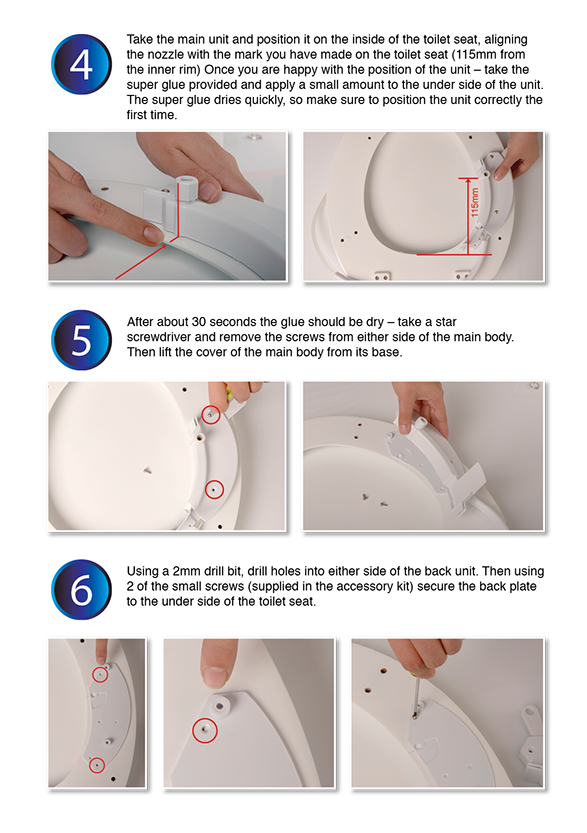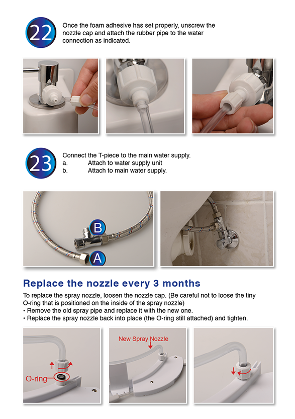 The correct installation of the product is important for the system to operate optimally. The Aquaspray Bidet can only be installed on a flat wooden seat.